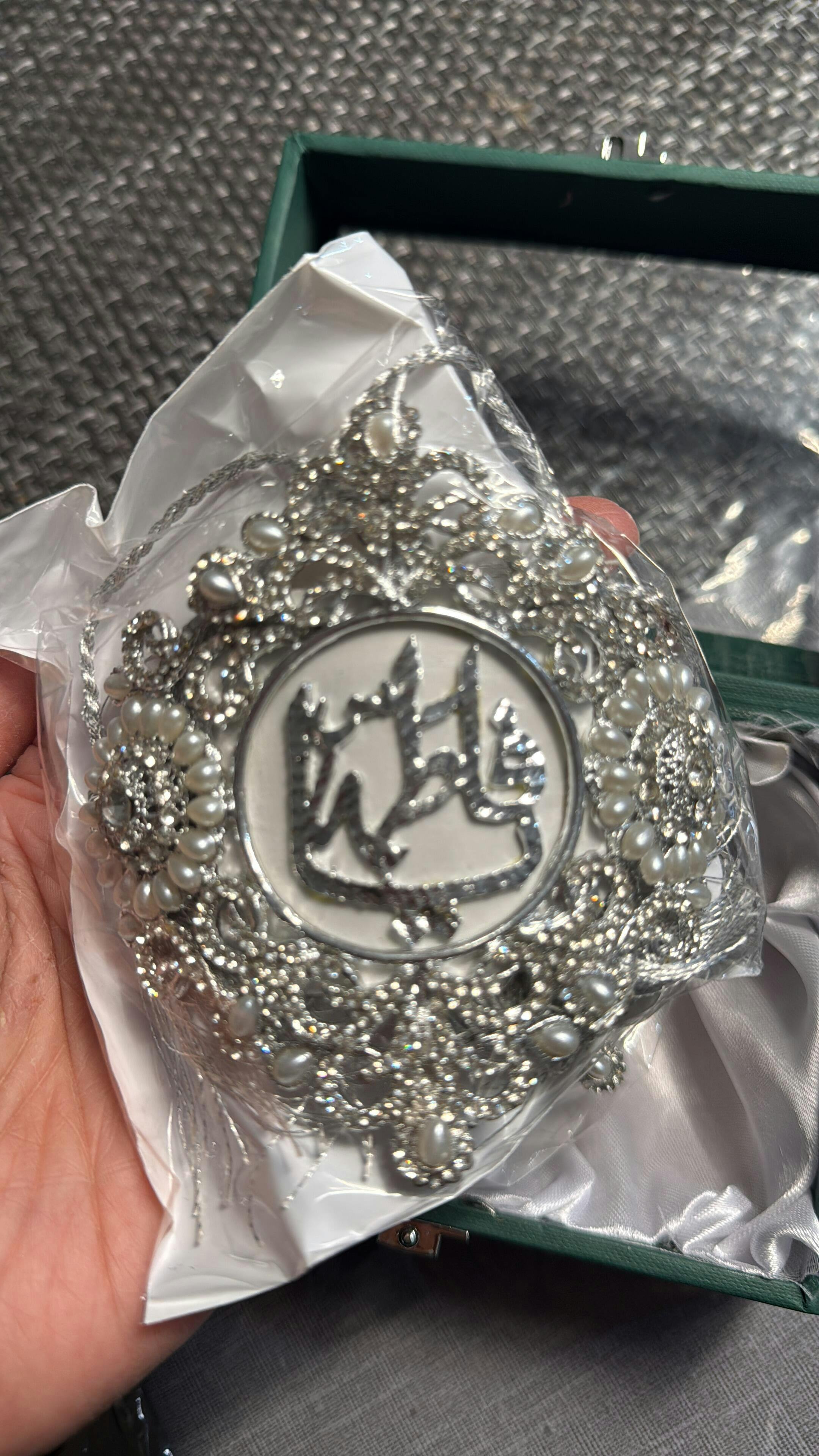 Premium Silver Plated Metal ImamZamin Zircorns & Pearl Work
