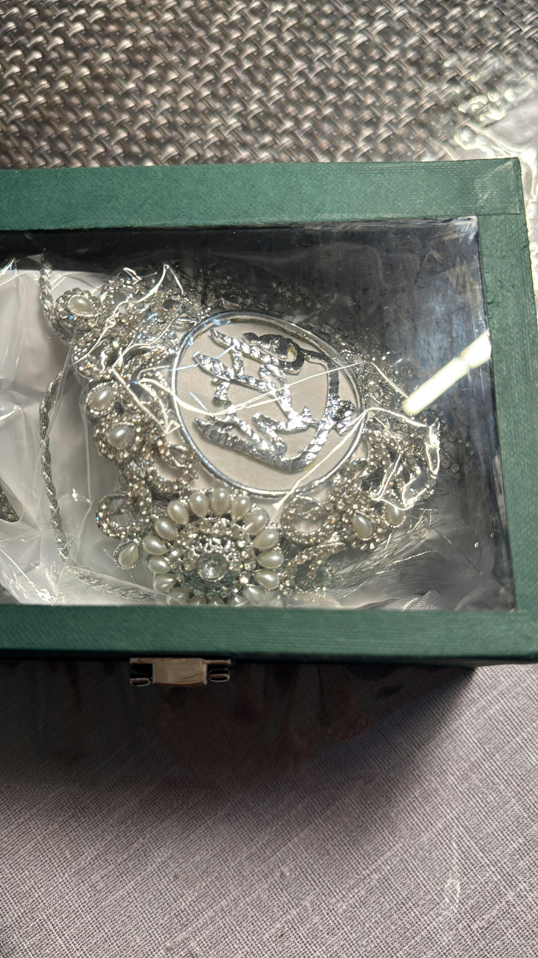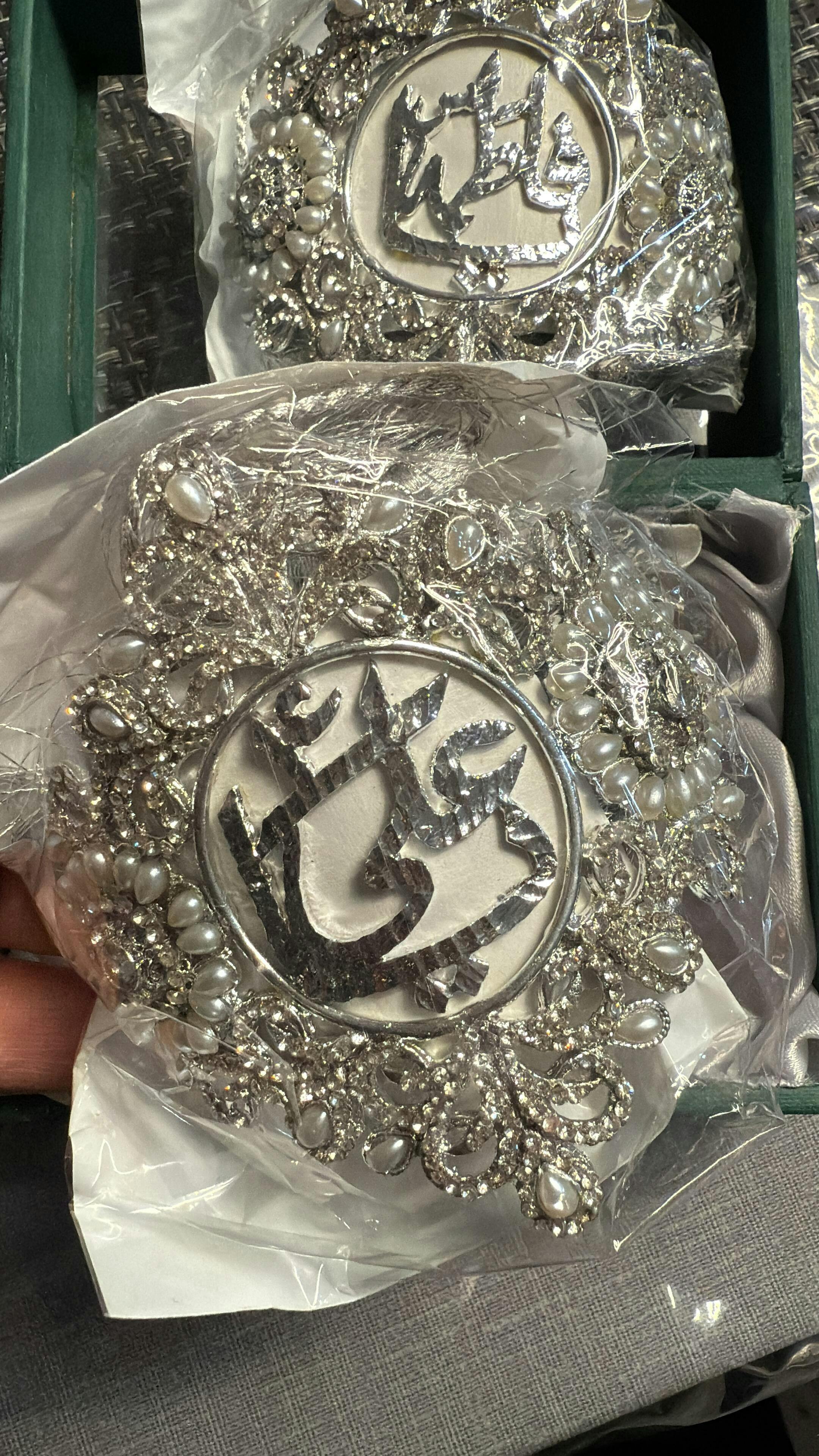 Premium Silver Plated Metal ImamZamin Zircorns & Pearl Work, the Elegant Work of Imamzamin in Silver Plating is an masterpiece of work for the Special events like Wedding or Nikkah Function. Your Wedding is not completed unless having this beautiful collection of Imam Zamin for the BrideGroom.