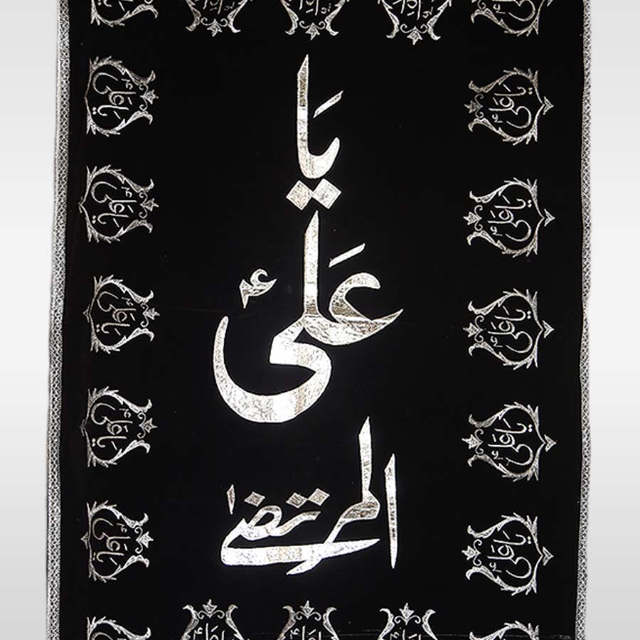 Mola Ali (as) Taboot Chaddar Black Velvet Applic Work, Chaddar includes work in Silver Applic work along with Silver thread work for Shahadat Majlis.