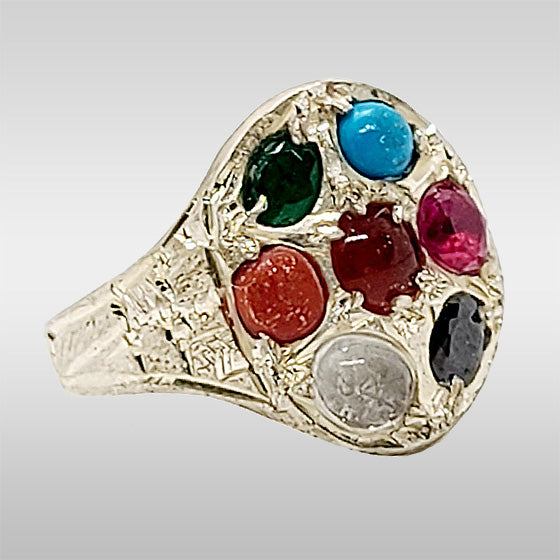 7 Color Stones Ring with Hirzejawad Bibi Umul Baneen (sa) Stone Silver Ring