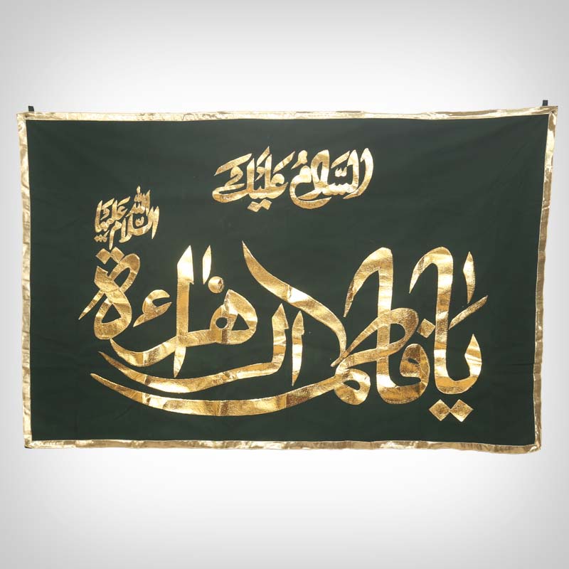 Ya Fatima Zehra (sa) Green & Golden Applic Banner
